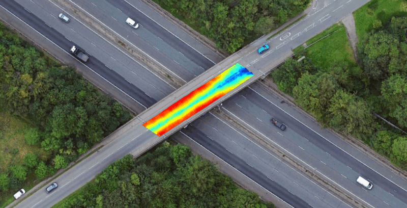 Sometimes we make complex jobs look easy. When asked to survey twenty five live bridges along the M40 corridor for variations in surface material thicknesses and potential signs of structural deterioration, we successfully completed the job in just two days. Using our Ultra-Wide Band High Density Array Ground Probing Radar (UWB HDAGPR) system, supplied by Kontur, all survey works were carried out in live traffic without the need for traffic management. This step frequency radar works in the frequency domain rather than the time domain, and can look into deep as well as thin materials. The system is positioned in real time using a Total Station or RTK GPS and is mounted on a van. Simply by driving back and forth across each bridge, the full carriageway width is covered, allowing anomalies and surfacing material thicknesses to be quickly assessed.